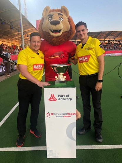 Wenn heute die Feld Europameisterschaft der Herren startet, beginnt für unseren Schiedsrichter Ben Göntgen ein besonderes Turnier. Nicht nur dass die letzte Vorbereitung auf die Olympischen Spiele startet, sondern vielmehr steigt er damit zum alleinigen Rekordhalter unter den deutschen Schiedsrichtern auf, die für eine Feld Europameisterschaft nominiert wurde. Seit 2013 kam unser Schiedsrichter bei jeder ausgetragenen EM zum Einsatz und kann somit nun auf seine 5. Nominierung blicken. Bei der ersten EM noch als Neuling im Schiedsrichterkreis unterwegs, pfiff er seit 2015 immer ein Halbfinale und kam 2019 sogar neben dem Halbfinaleinsatz im Finale Belgien - Spanien zum Einsatz. Der RTHC drückt auch dieses Mal die Daumen, dass es wieder mindestens ein Halbfinale wird.
