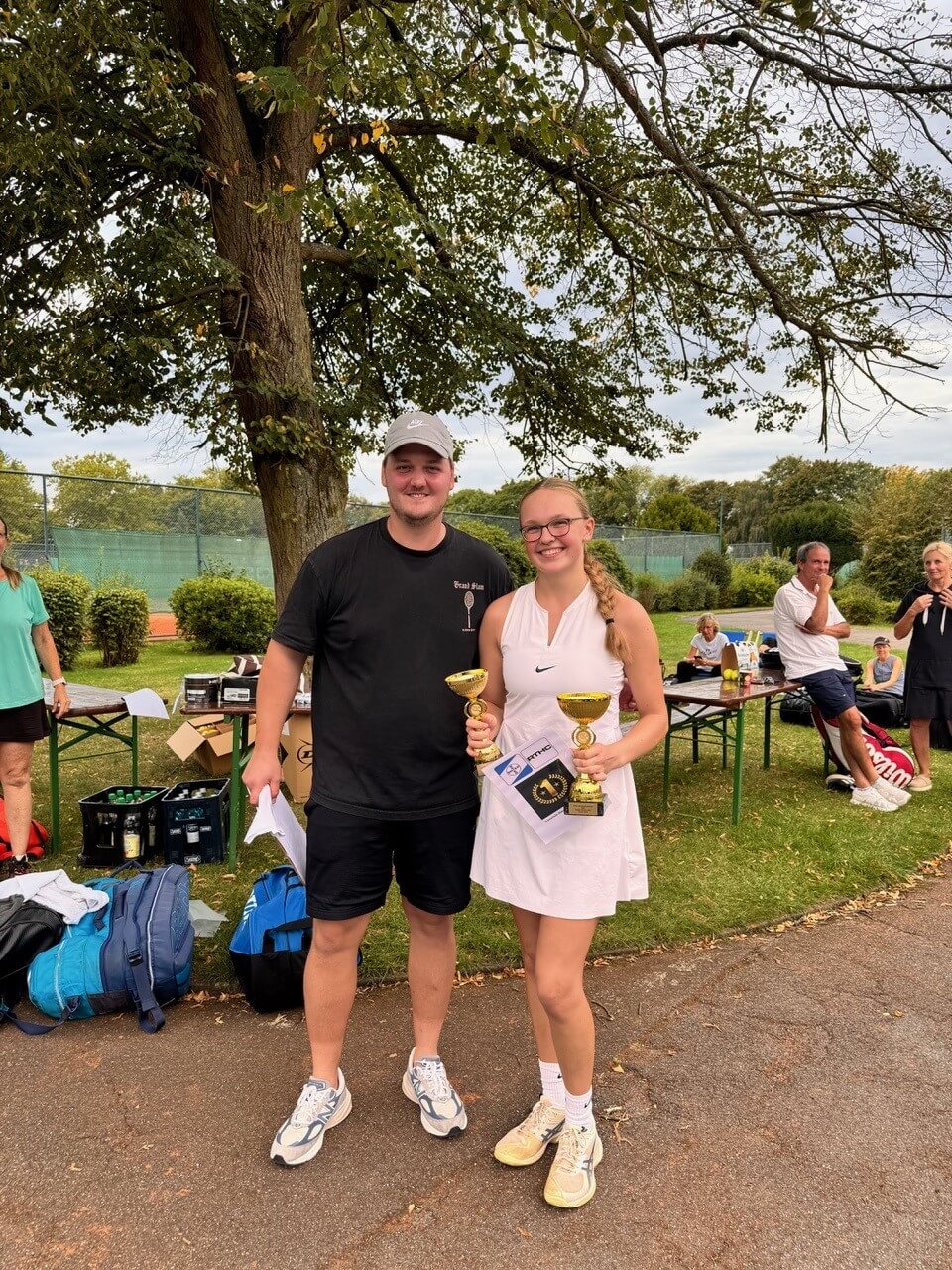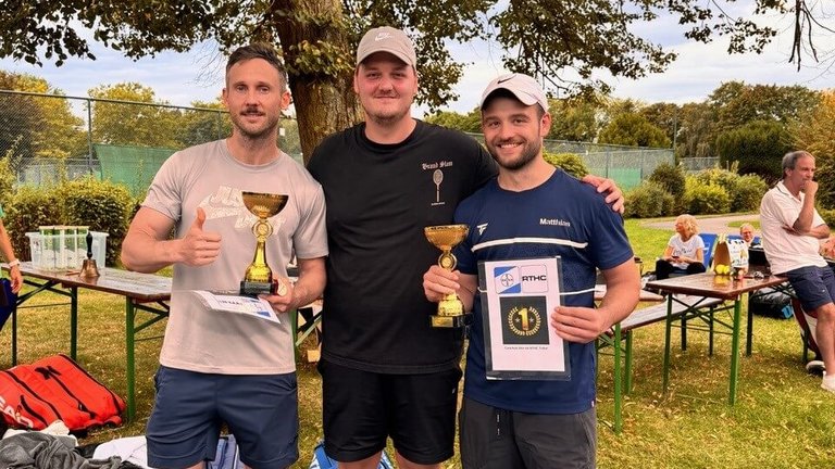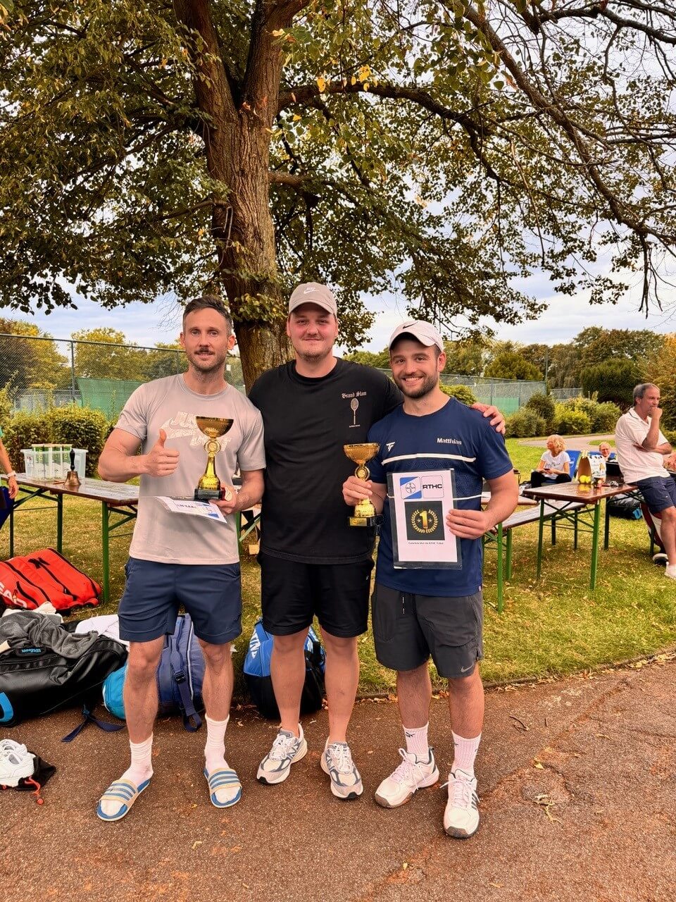 Im Anschluss an die Matches kamen alle Teilnehmenden zur Siegerehrung zusammen, die vom Breitensportwart Daniel Wagner moderiert wurde. Neben prestigeträchtigen Pokalen erhielten die Platzierten attraktive Preise – von Griffbändern und Balldosen bis hin zu einem Gutschein für ein RTHC-Trikotshirt als Hauptgewinn.